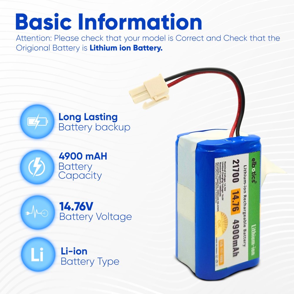 ELBOTICS 14.8v 2600 mAh Li-ion Replacement Battery is perfect for my Eufy Robovac. The performance is excellent, and the team at Elbotics provided exceptional customer support, discussing the issue with my faulty battery and helping with the replacement. Truly worth it. Thank you, Elbotics!