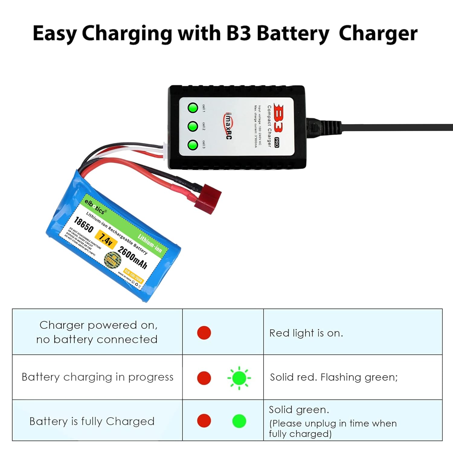 Wide Application: Elbotics 2600mAh high capacity Li-ion batteries fit for MN D90/91, MN 99/99s RC cars and Skytech Model H101, Model H103 Model H105 remote control RC boats with SM 2P Plug. Please kindly check the battery compartment size and the original battery plug of your RC boat. (Only if the voltage, dimension, and plug match, then it will fit.)