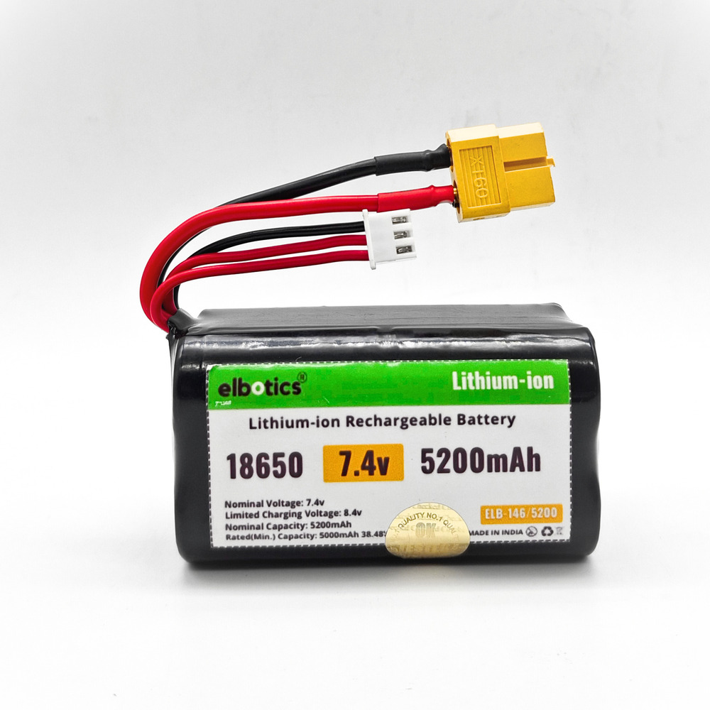Upgrade your projects with the 7.4V 5200mAh Li-ion Rechargeable Battery Pack — the ideal power solution for RC cars, drones, robots, quadcopters, boats, and DIY electronics. Built using high-quality 2S 18650 lithium-ion cells, this 7.4V battery delivers long-lasting performance, stable voltage, and efficient energy transfer. Perfect for remote control vehicles, FPV drones, robotic kits, power tools, and DIY power banks, this battery ensures you get maximum power for longer run times. Featuring a secure XT60 connector and balance plug, it offers wide compatibility with popular brands and models.